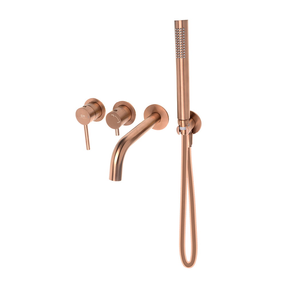 Emporia FLY bateria wannowa podtynkowa z boxem , 4 - otworowa z wylewką i zestawem prysznicowym , kolor miedź szczotkowana