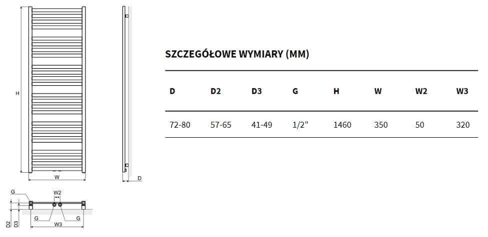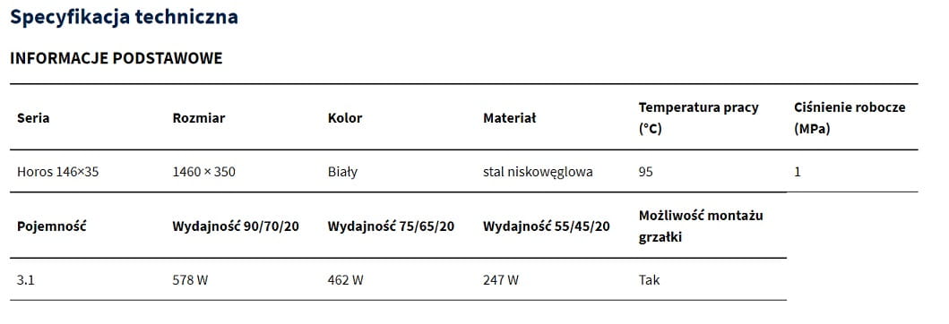 Do grzejników Horos o szerokości 35 cm zalecamy dobór grzałek o mocy 400W.