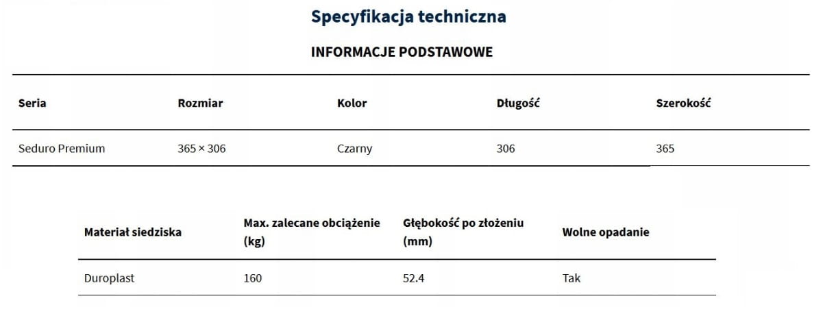 ⦁ Wolnoopadający mechanizm z cichym opadaniem siedziska