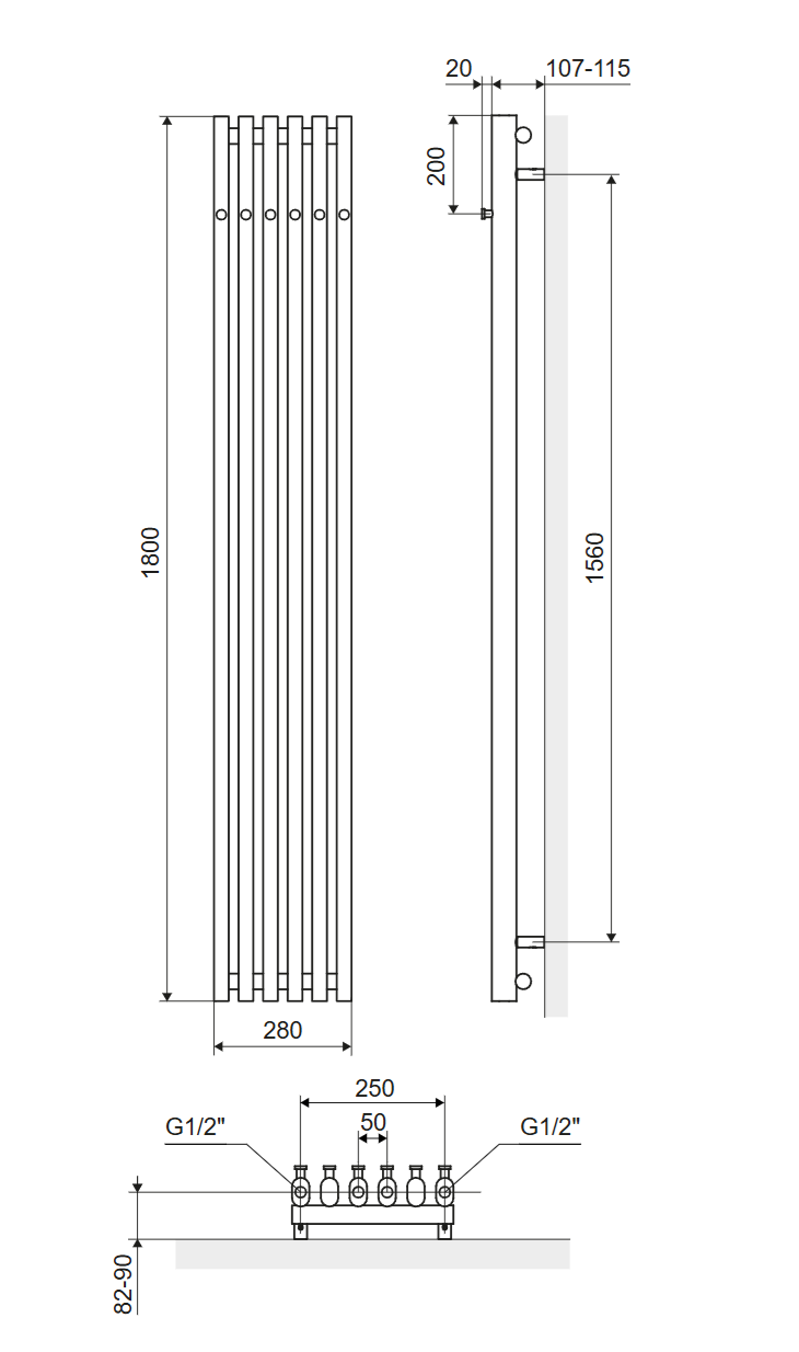 W zależności od potrzeb model Verdi dostępny jest w czterech wariantach szerokości – z 3, 4, 5 lub 6 profilami – co pozwala precyzyjnie dopasować grzejnik do metrażu łazienki oraz zapotrzebowania na moc grzewczą.
