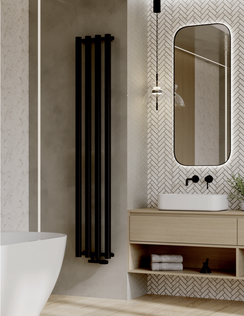 AQUAFORM ASAMI grzejnik dekoracyjny pionowy , rozmiar 1500x422x83(108) mm , kolor czarny