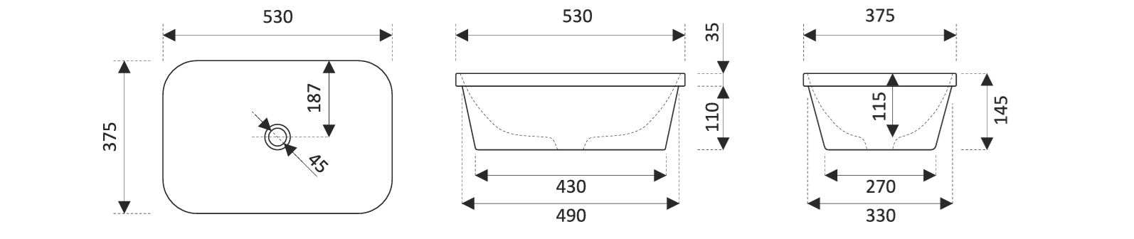 Aquaform Miramar umywalka wpuszczana w blat 53 x 37,5 x 14,5 cm , kolor biały
