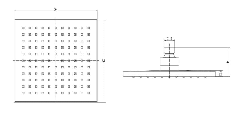 Głowica prysznicowa RAIN SQUARE BLACK 20x20 z firmy Hydroland wykonana została z wysokiej jakości tworzywa PVC i wykończona powłoką w kolorze czarny mat . Głowica posiada 120 dysz wypływu wody . Zastosowano w niej system Anti-Calc System, specjalnie wyprofilowanych gumowych wypustek pozwalających na szybkie usuwanie nagromadzonych osadów kamienia. Głowica posiada regulowany kąt pochylenia oraz przyłącze z gwintem wewnętrznym 1/2".