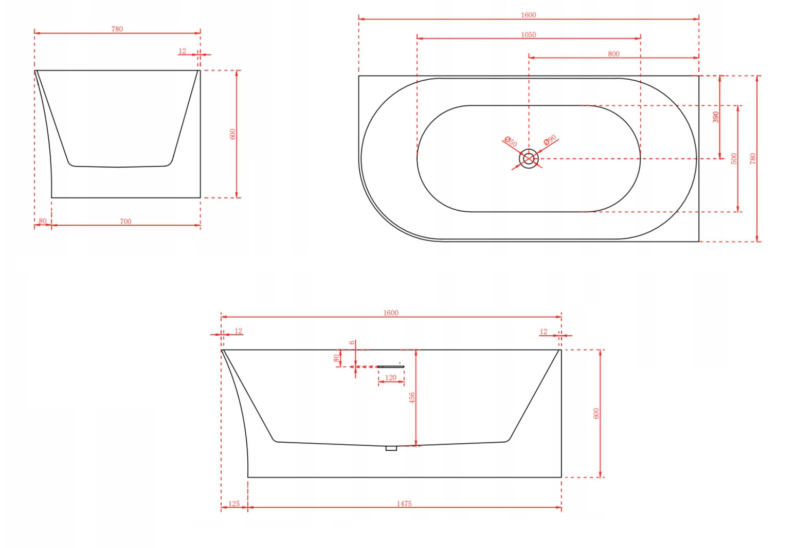 Emporia Molly wanna wolnostojąca narożna przyścienna prawa 170 x 78 cm z przelewem szczelinowym, z syfonem, kolor biały połysk.