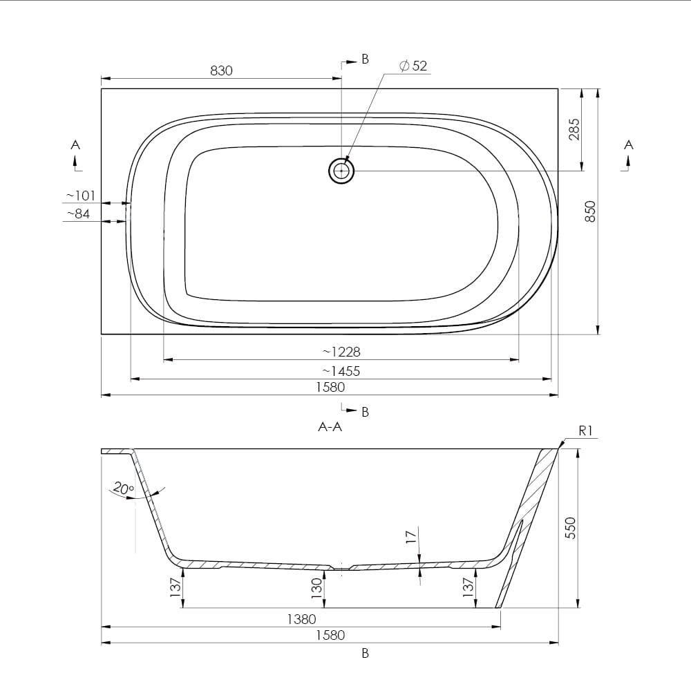 - Lokalizacja odpływu: z boku