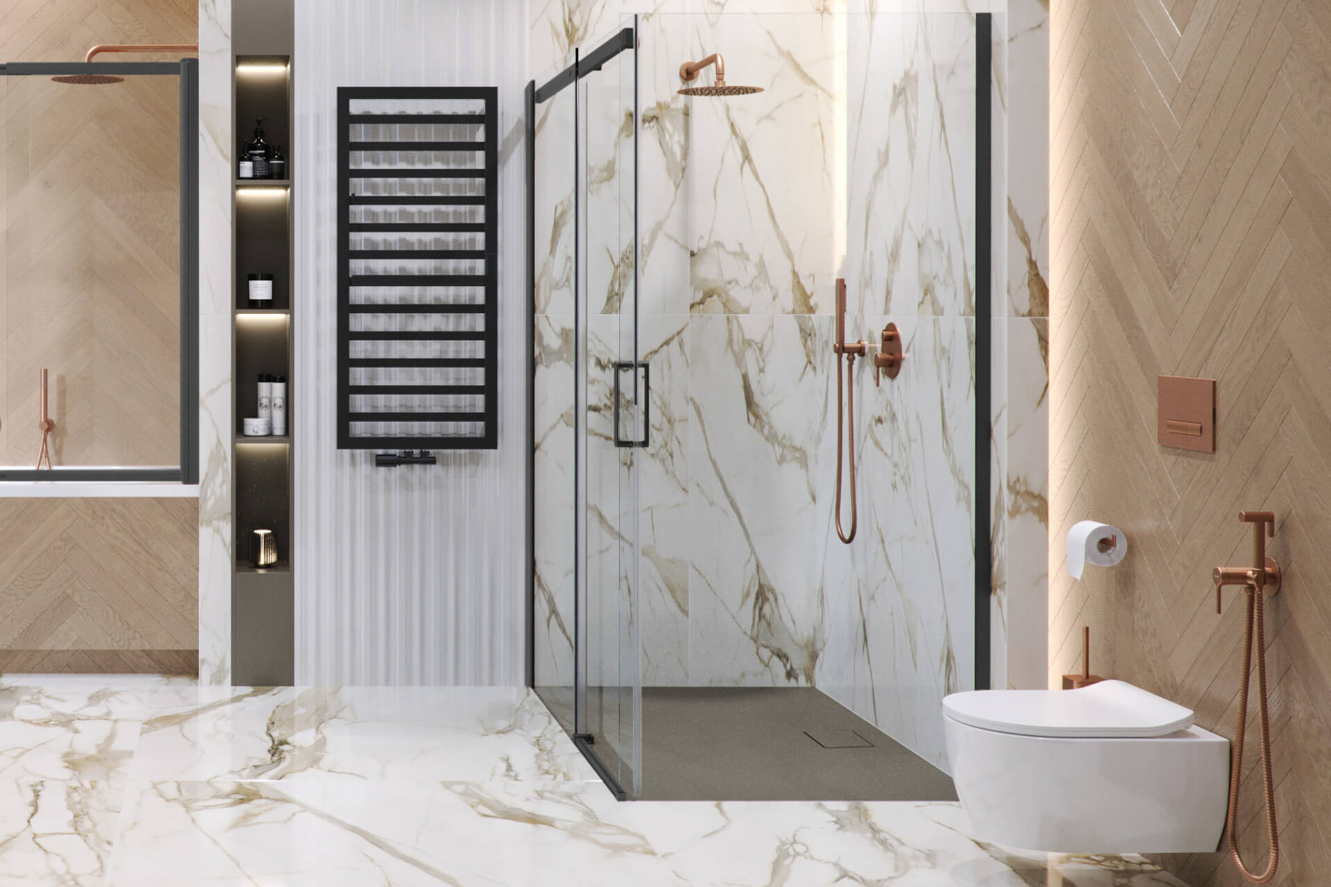 Seria Caldo obejmuje zestawy termostatyczne zintegrowane, trójosiowe, trójosiowe z możliwością montażu grzałki oraz zestawy maskujące. Zawory dostępne są w kolorach: chrom, czarny mat, biały mat oraz cappuccino. Dla estetycznego wykończenia instalacji oferujemy zestawy maskujące, które idealnie komponują się z kolorami zaworów.