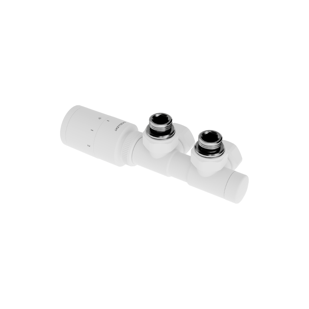 Zestaw termostatyczny Caldo to eleganckie i funkcjonalne rozwiązanie do grzejników dekoracyjnych oraz łazienkowych z dolnym podłączeniem o rozstawie 50 mm. Dzięki kompaktowej budowie i starannemu dopracowaniu detali, pozwala na precyzyjne sterowanie temperaturą oraz regulację przepływu wody, co zapewnia optymalną wydajność systemu grzewczego.