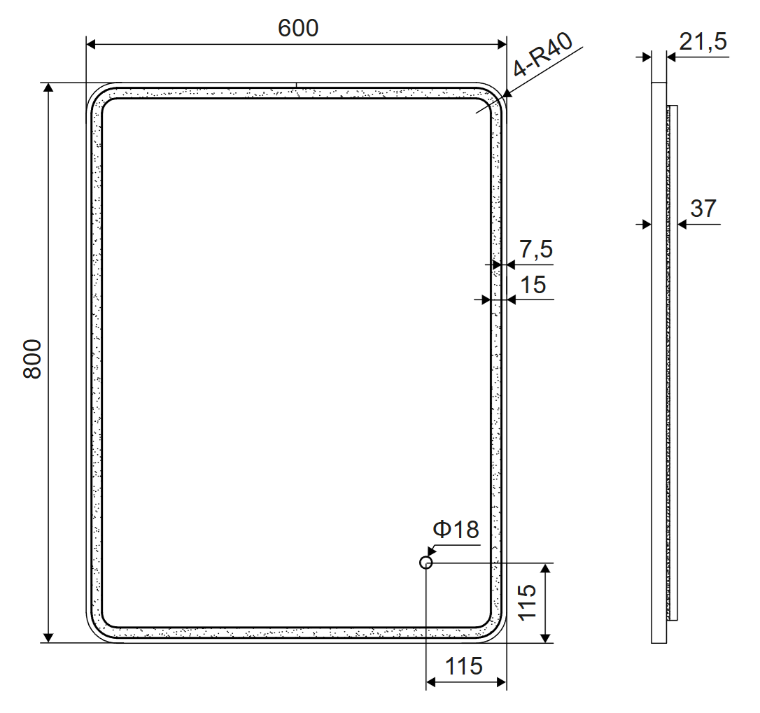 Corido to lustro łazienkowe, wykonane z wysokiej jakości tafli szkła, z oświetleniem LED ze zmienną barwą światła w zakresie 3000-6000K oraz z możliwością zmiany intensywności światła. Piaskowanie szkła o szerokości 15mm wykonane wokół krawędzi tafli pozwala na intensywne oświetlenie użytkownika. Z kolei akrylowa osłona ukryta pod aluminiową ramą zapewnia delikatne, jednolite rozproszenie światła na ścianie bez widocznych punktów diod LED.