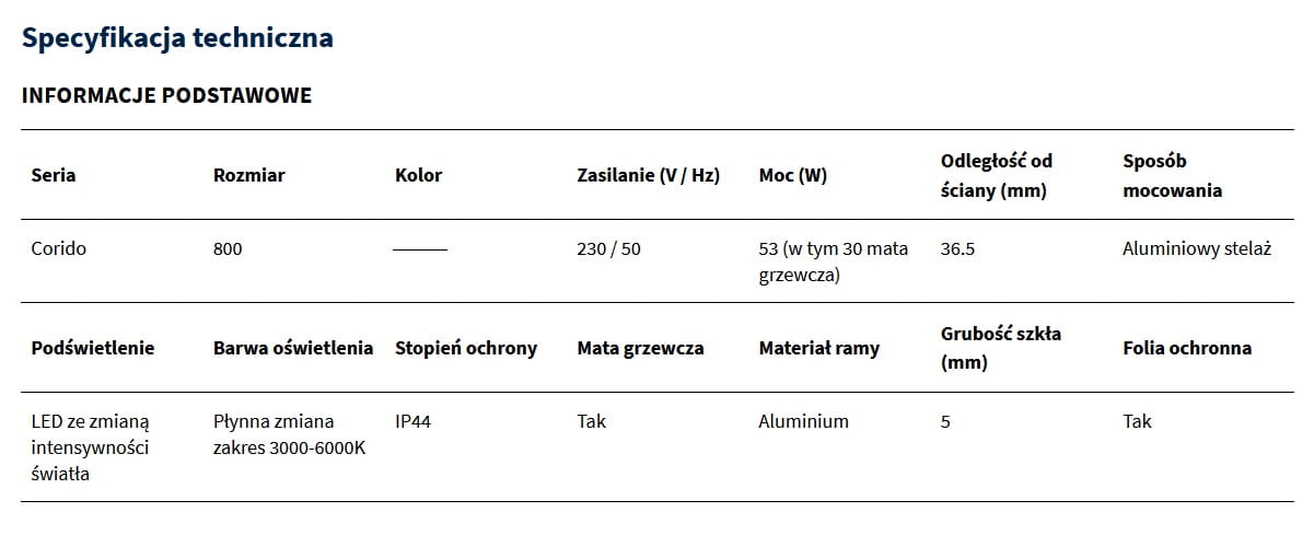 - Mata grzewcza (antypara) - zapomnij o zaparowanych lustrach po gorącej kąpieli.