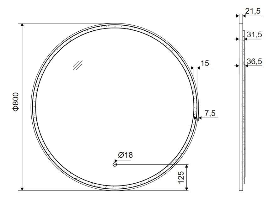 Lustro łazienkowe LED Corido to lustro o średnicy 80cm i jest wykonane z wysokiej jakości tafli szkła, z oświetleniem LED ze zmienną barwą światła w zakresie 3000-6000K oraz z możliwością zmiany intensywności światła. Piaskowanie szkła o szerokości 15mm wykonane wokół krawędzi tafli pozwala na intensywne oświetlenie użytkownika. Z kolei akrylowa osłona ukryta pod aluminiową ramą zapewnia delikatne, jednolite rozproszenie światła na ścianie bez widocznych punktów diod LED.