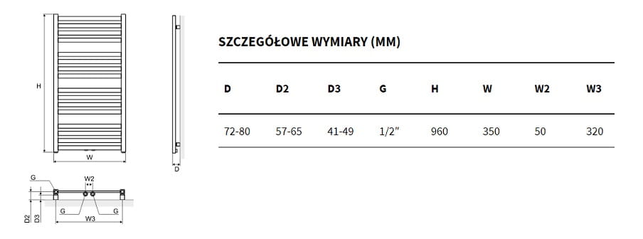 Do grzejników Horos o szerokości 35 cm zalecamy dobór grzałek o mocy 400W.