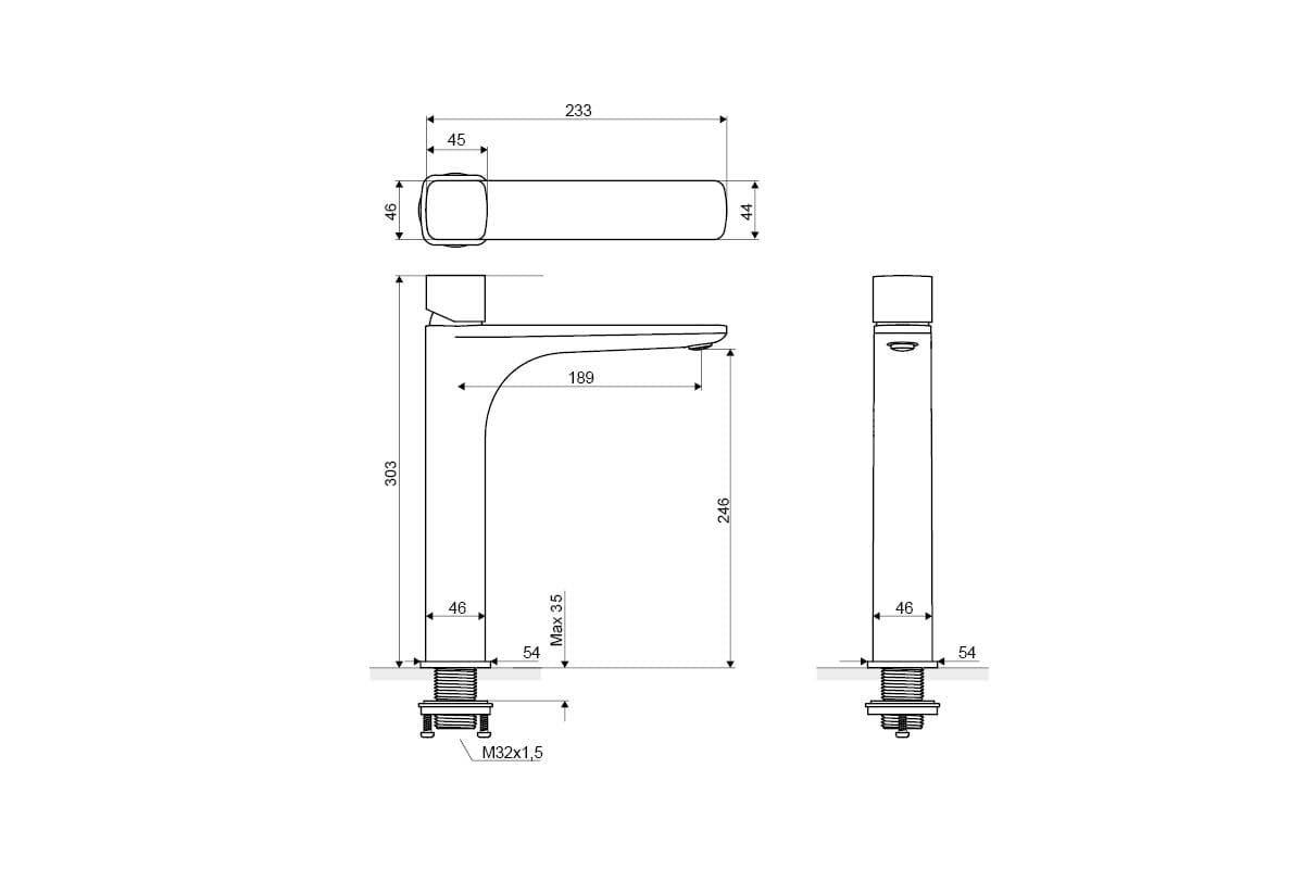 | Wysokość (mm) | Dł. wylewki (mm) | Materiał korpusu | Kolor |