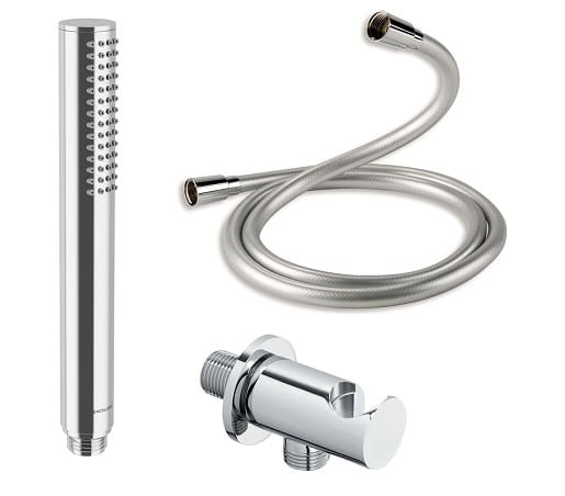 Zestaw prysznicowy punktowy PI wykonany z mosiądzu, słuchawka z systemem Pure-calc ułatwiającym czyszczenie pasuje, idealnie do baterii wannowej z linii PI, dostępny w 3 kolorach. Zestaw natryskowy złożony ze słuchawki 1 funkcyjnej, węża natryskowego oraz mocowania punktowego ściennego. Całość pokryta eleganckim kolorem chrom nada Twojej łazience wyjątkowego wyglądu.