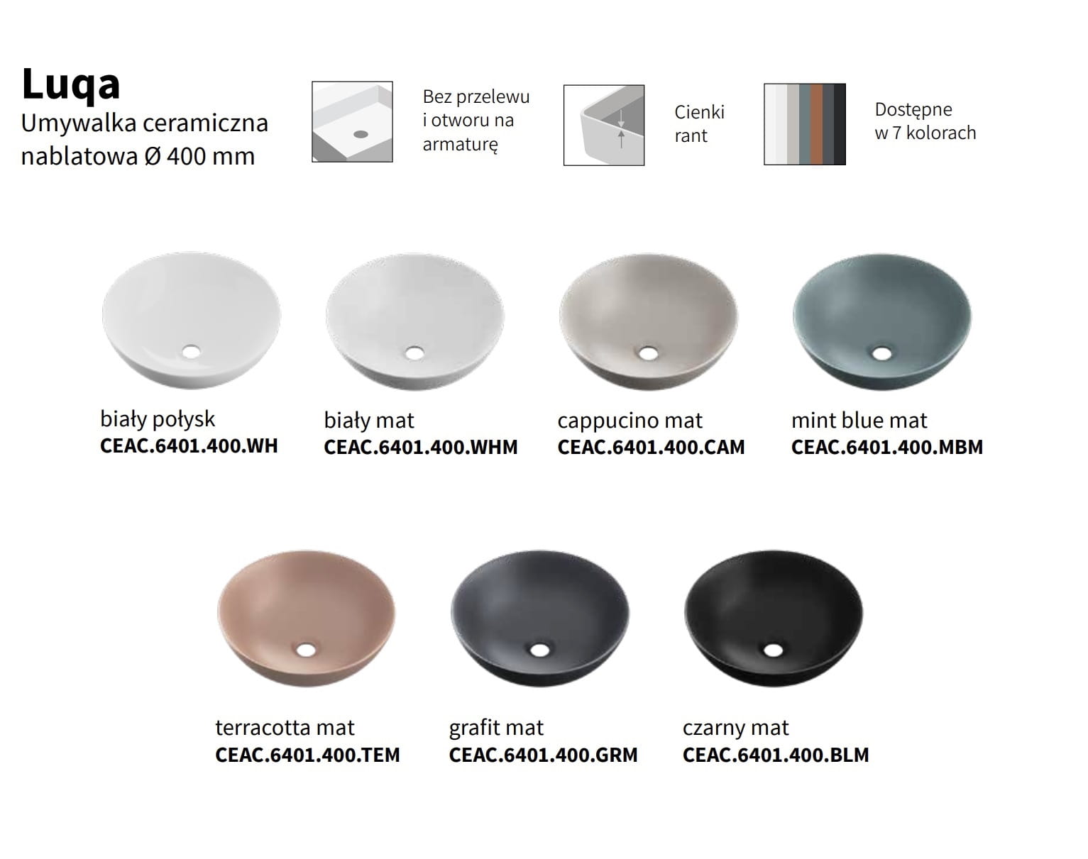 Uniwersalny kształt, dyskretny, niebanalny design, więcej przestrzeni umywalkowej i ciekawa aranżacja, wyróżniają umywalkę Luqa spośród szerokiej oferty dostępnej na rynku. Umywalka doskonale sprawdzi się w nowoczesnej łazience, gdzie czas i wygoda mają wspierać codzienną higienę. Umywalka dostępna jest w kilku modnych kolorach w wersji matowej