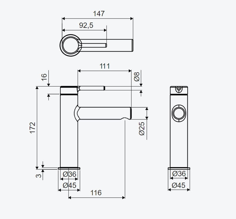 Bateria umywalkowa posiada wylewkę o zasięgu 116mm i wysokości 108mm. Dzięki temu z powodzeniem może być stosowana do większości umywalek. Korpus wykonany jest z jednego odlewu. Posiada wbudowane: głowicę Kerox oraz perlator Neoperl Slim. Jej idealnym uzupełnieniem będą korki umywalkowe Click-Clack dopasowane do koloru ceramiki lub armatury