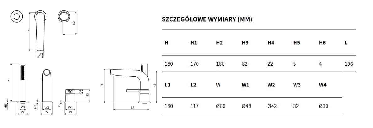 - Zasięg wylewki: 19,6 cm