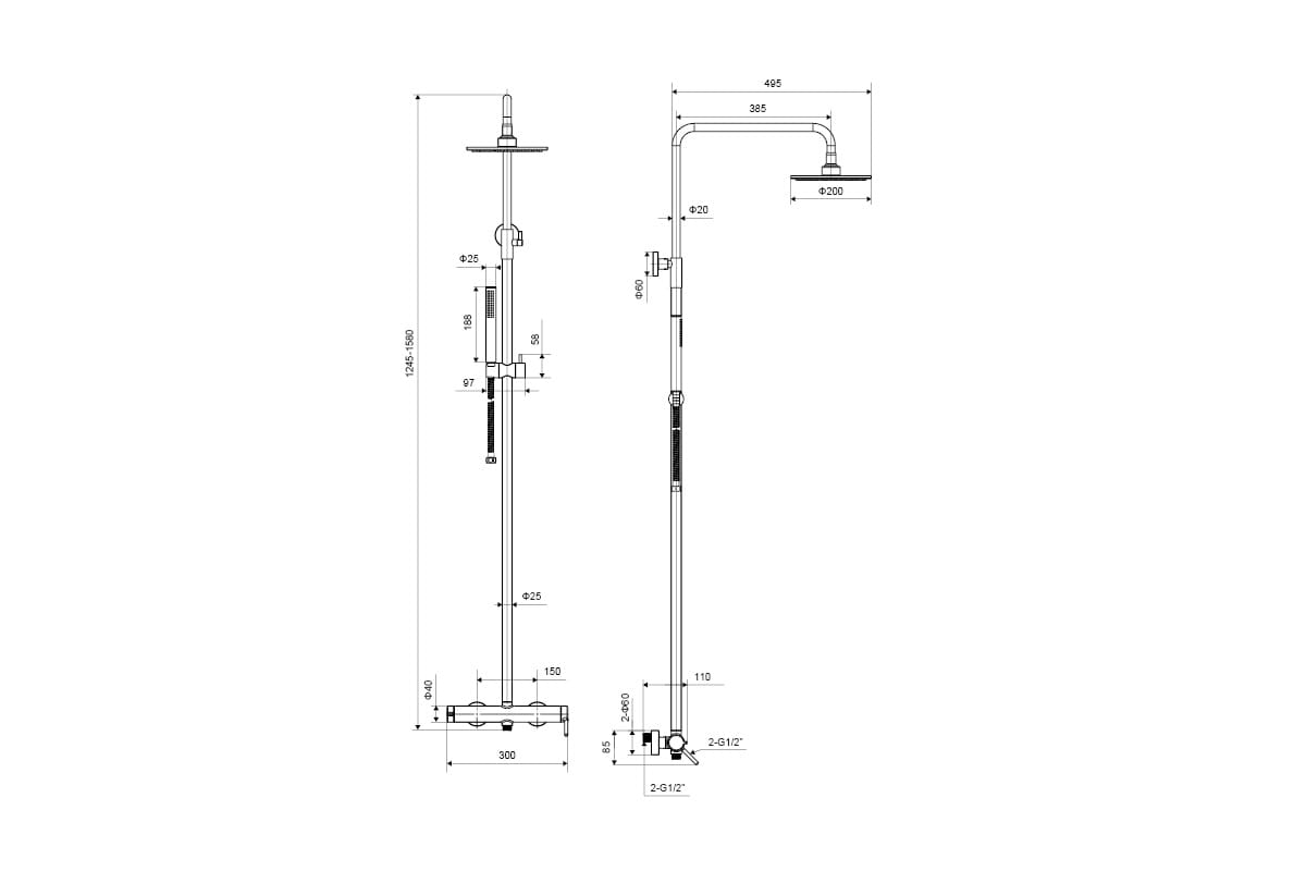 Zestaw prysznicowy PI daje duże możliwości dopasowania – ponad 60 cm regulacji wysokości drążka. Posiada mechaniczny przełącznik funkcji w postaci pokrętła z lewej strony baterii, uchwyt baterii pozwala na swobodną regulację ciśnienia i temperatury. Bateria posiada wbudowaną głowicę Kerox. Bateria połączona jest z pionową rurą zestawu o długości 91-153 cm oraz wysięgiem 38 cm. Górna głowica o średnicy 20 cm, oraz 1-funkcyjna słuchawka pozwalają na komfortowe użytkowanie zgodnie z potrzebami.