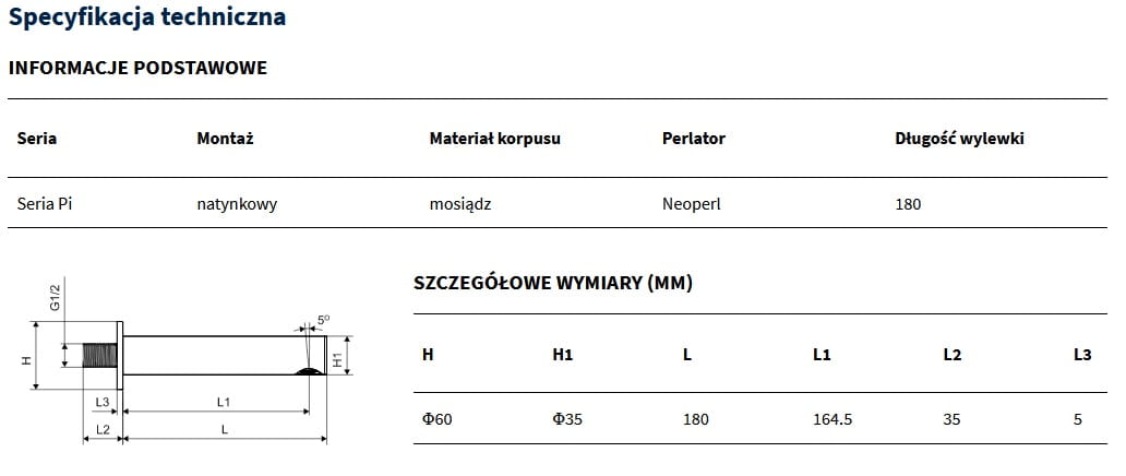 Wylewka wannowa Pi. Linia baterii PI to szeroka grupa armatury powstała z dbałością o każdy detal. Wyróżnia się jakością wykonania oraz zastosowanymi rozwiązaniami funkcjonalnymi. Dużą zaletą linii Pi jest jej dostępność w 7 najmodniejszych kolorach: chrom, czarny mat, biały mat, złoty połysk, złoty szczotkowany, mosiądz szczotkowany oraz grafit szczotkowany. Nazwa Pi wywodzi się od liczby π, a oznacza ona wielkość proporcji pomiędzy rozmiarami ważnych elementów każdej baterii np. długość korpusu/długość uchwytu itp. Dzięki tej naturalnej proporcji stosowanej intuicyjnie już od starożytności , linia baterii Pi zachwyca spójnością wyglądu która wynika z logiki matematycznej ukrytej już na etapie projektowania. Linia baterii PI została opatentowana i podlega ochronie na terenie całej Unii Europejskiej.