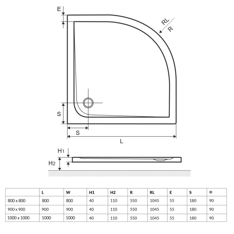 Excellent Sense brodzik półokragły niski 4cm , rozmiary 80 , 90 , 100 cm