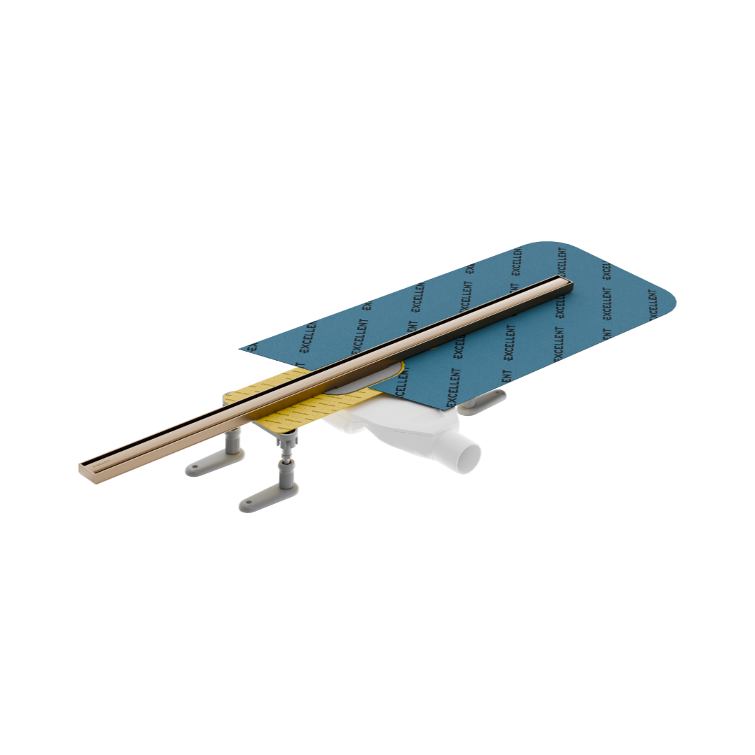 Stilio Slim odpływ liniowy zestaw baza z syfonem, mankiet uszczelniający, ruszt dekoracyjny, kolor miedziany szczotkowany