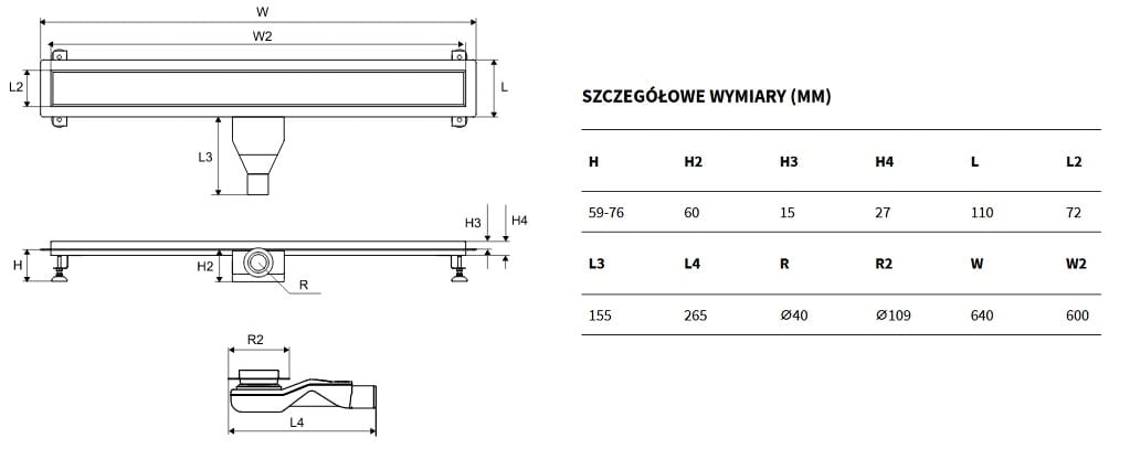 Komplet zawiera hydroizolacyjną elastyczną matę uszczelniającą oraz wysokiej jakości syfon o niskiej wysokości zabudowy i dużej przepustowości 36 l/min.