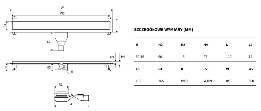 - Wysokość z syfonem : 6cm