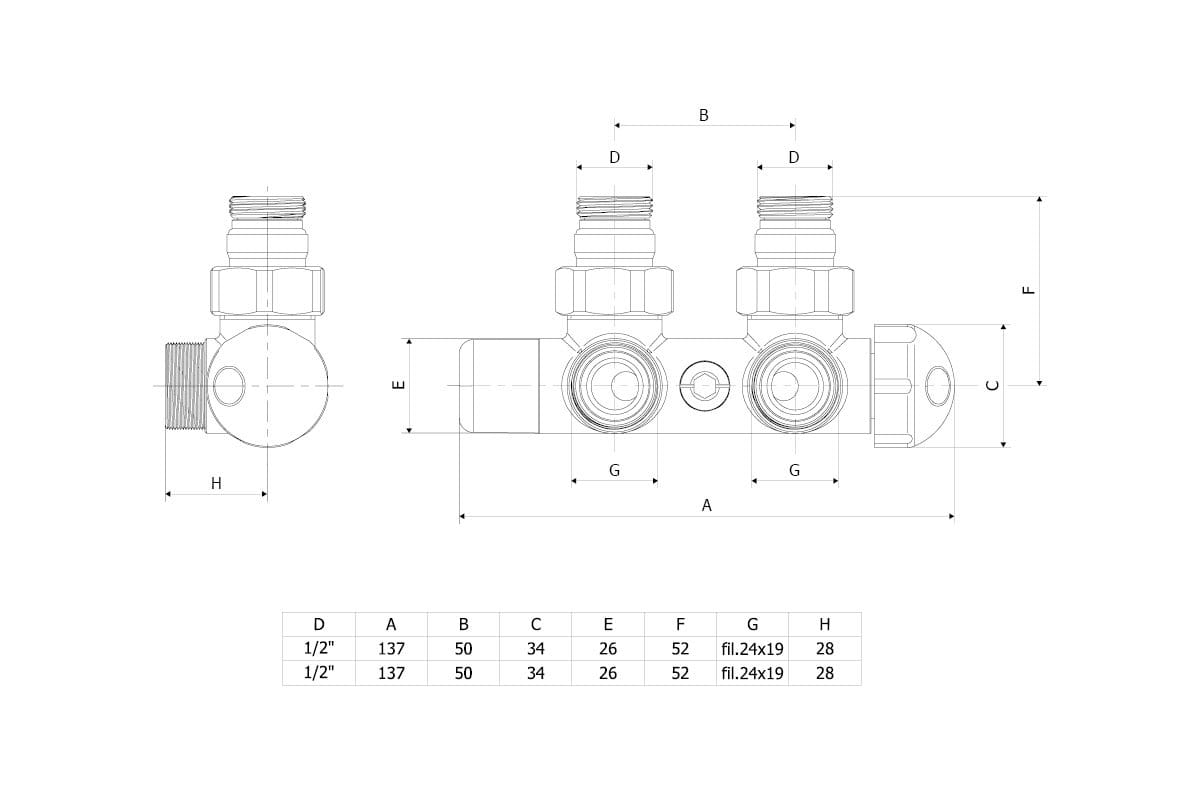 - zawór kątowy zintegrowany o rozstawie przyłączy 50 mm