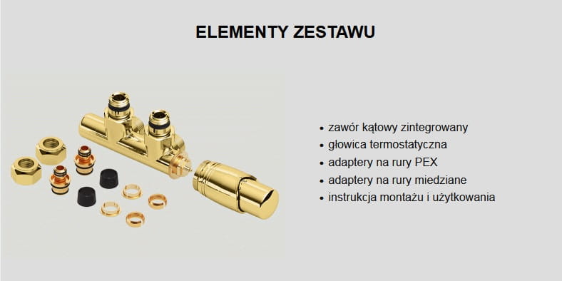 Excellent Volaro zawór grzejnikowy zintegrowany termostatyczny 50mm złoty połysk prawy !