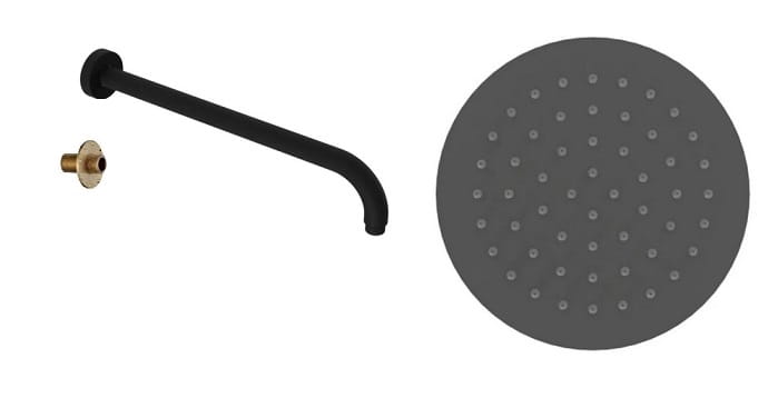 Głowica prysznicowa okrągła Slim 25cm + ramię prysznicowe ścienne 40 cm okrągłe, kolor czarny mat