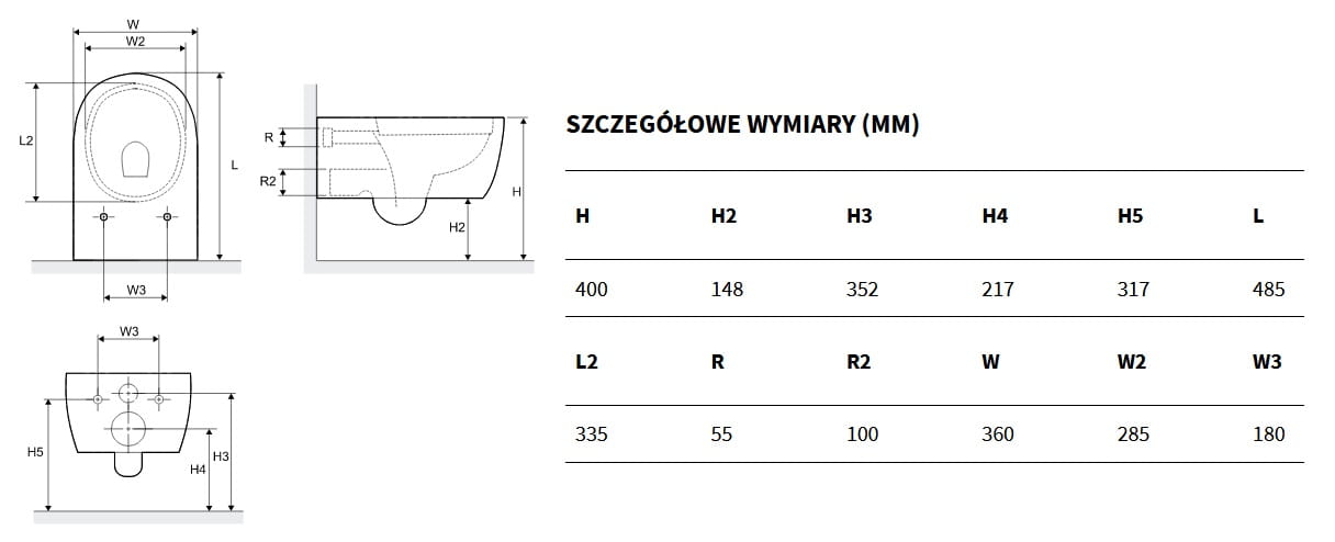 Miska posiada szereg cech, które podkreślają jej wyjątkowość: łatwe czyszczenie, wysokiej jakości powłoka ceramiczna w kolorze biały połysk, kryte mocowania i uniwersalne spłukiwanie 6/3l oraz 4,5/3l.