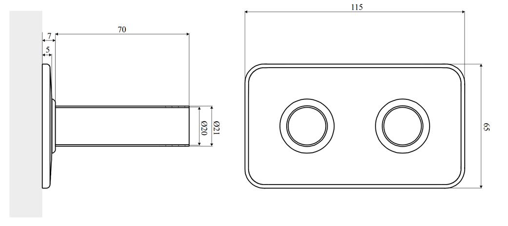 - 1 x rozeta prostokątna podwójna (otwory ¾” = Ø 25mm)