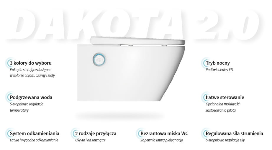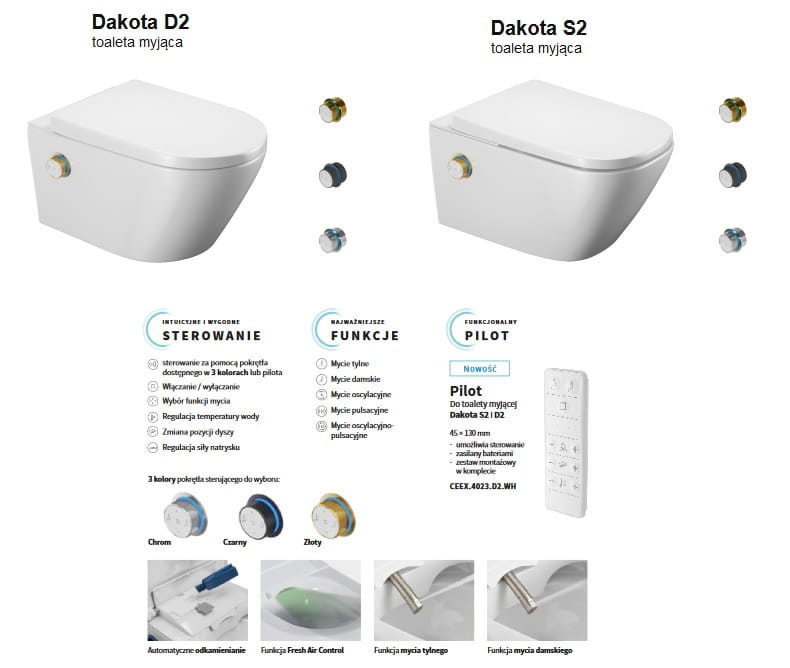 Toaleta myjąca Dakota S2 ma możliwość sterowania pilotem. Pilot sprzedawany oddzielnie.