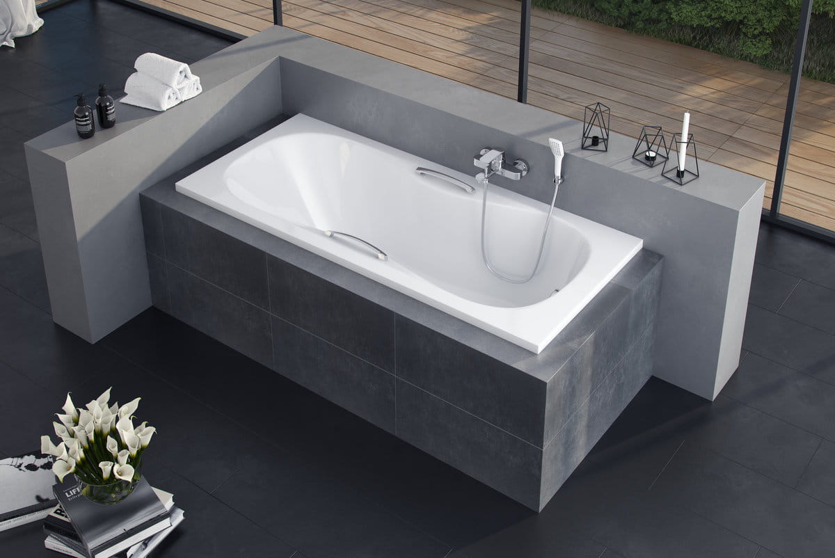 Wanna prostokątna w komplecie z uchwytami w kolorze chrom (2szt.) i nogami.