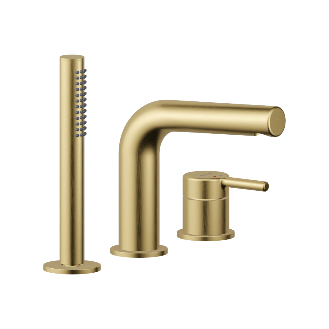 Bateria wannowa 3-otworowa Pi , kolor złoty szczotkowany . Pi to kompletna linia produktów Excellent, która łączy harmonijne wzornictwo, wysoką funkcjonalność oraz najwyższej klasy komponenty. Produkty wykonane z mosiądzu dostępne są w 4 kolorach: chrom, biel, czarny mat, złoty połysk, złoty szczotkowany i mosiądz szczotkowany.