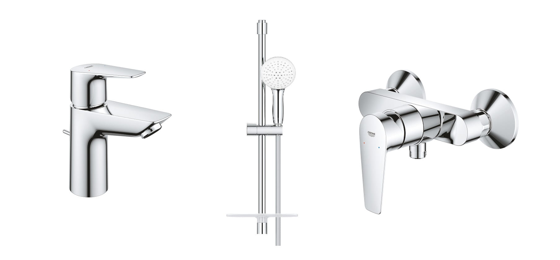 Bateria umywalkowa Grohe BauEdge, DN 15, rozmiar S, z zestawem odpływowym, przepływ 5,7 l/min. , kolor chrom , nr.kat.:23328001