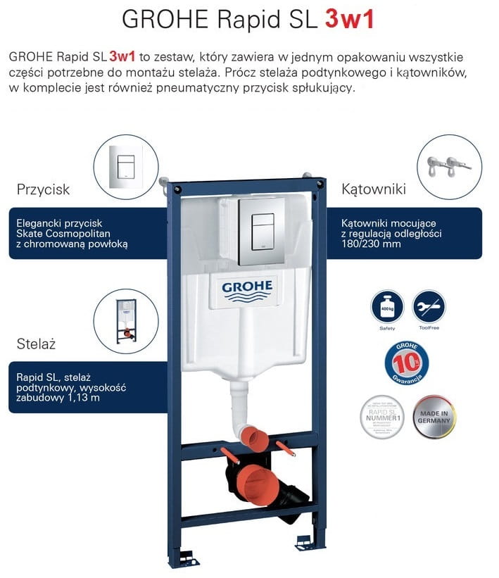 Grohe Rapido SL 3w1 stelaż podtynkowy do wc , w opakowaniu :