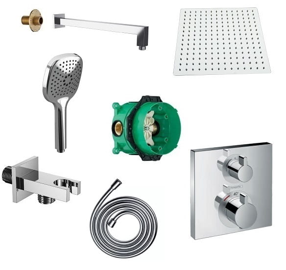 Hansgrohe Ecostat Square + iBox + Auris Select + Kvadro deszczownica 20