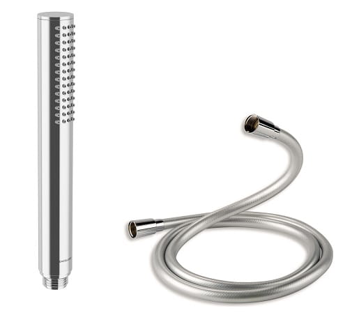 3.Excellent zestaw prysznicowy LOKA - słuchawka prysznicowa minimalistyczna o okrągłym kształcie , wykonana z wysokiej jakości mosiądzu z chromowym wykończeniem. Posiada system Pure-calc - dzięki specjalnym wypustkom zapobiega osadzaniu się i ułatwia oczyszczanie z kamienia, wąż Silver o dł 150cm wykonany z tworzywa o okrągłym przekroju, kolor chrom.