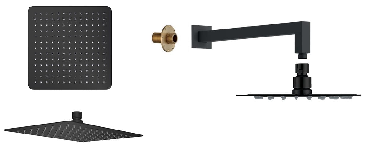 4.Ramię prysznicowe o długości 40cm i formie kwadratu , materiał mosiądz , kolor czarny mat