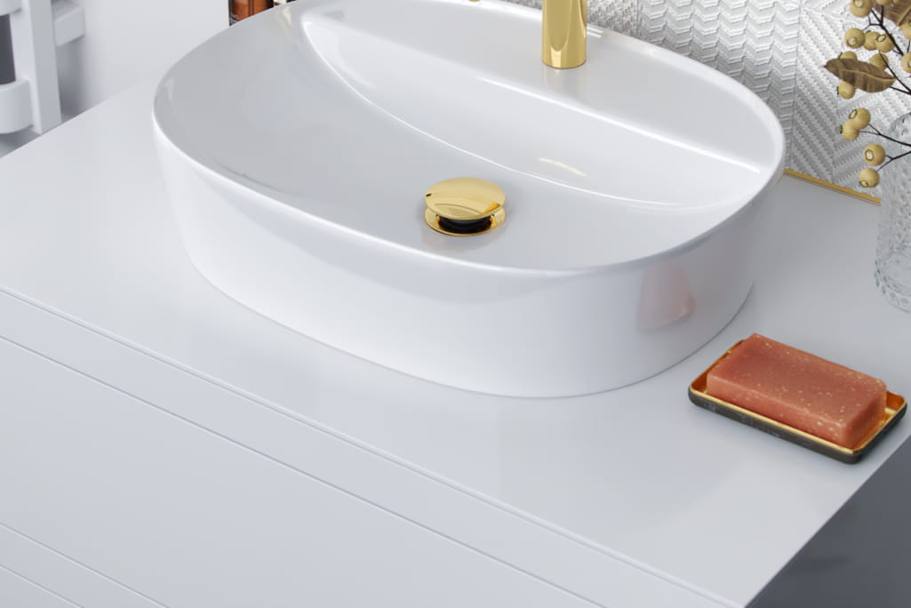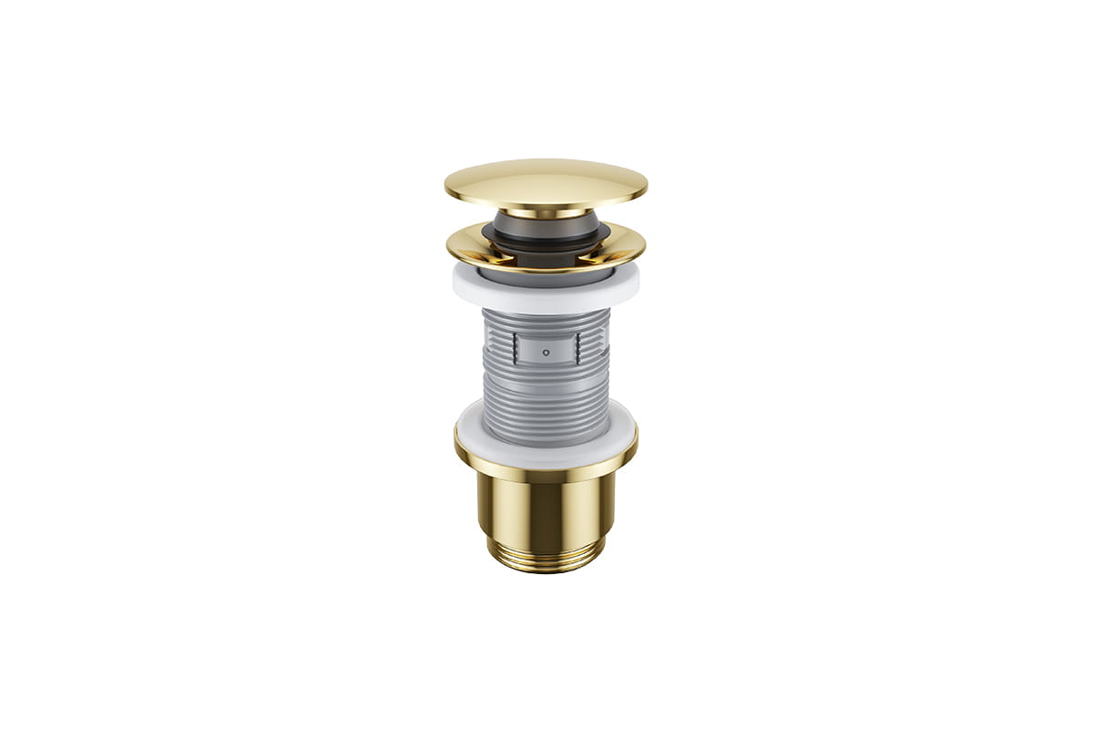 Korek Click-Clack jest praktyczny w codziennym użytkowaniu – dopasowany kolorystycznie do armatury w kolorze złoty połysk i pasuje do większości ceramiki sprzedawanej na rynku.