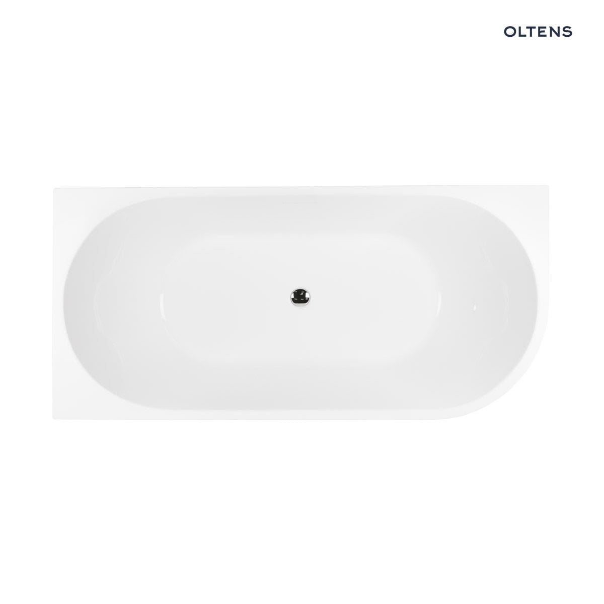Oltens Delva Sela zestaw wanna wolnostojąca narożna 170x80 cm akrylowa lewa biała z parawanem nawannowym 115 cm 2-częściowy chrom