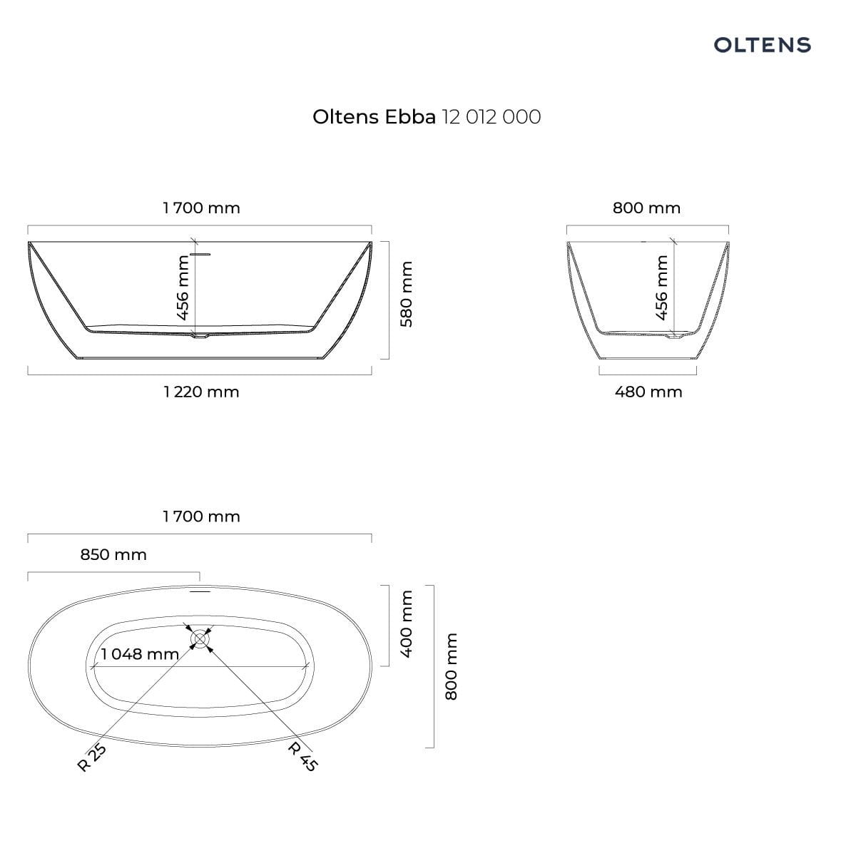 Oltens Ebba wanna wolnostojąca 170x80 cm owalna akrylowa , kolor biały połysk , nr.kat.:12012000