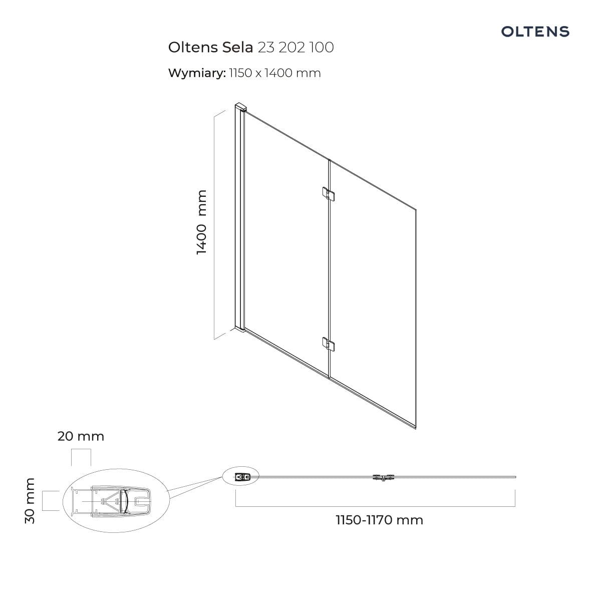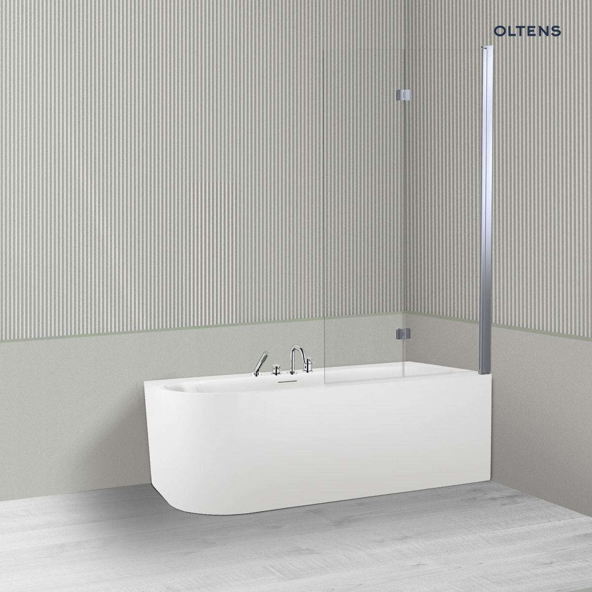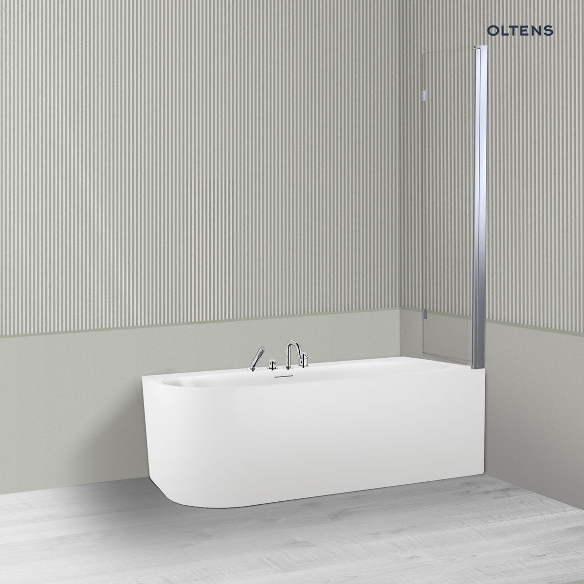 Oltens Hulda Sela zestaw wanna wolnostojąca narożna 160x75 cm akrylowa prawa biała z parawanem nawannowym 115 cm 2-częściowy chrom , nr.kat.: 18007000