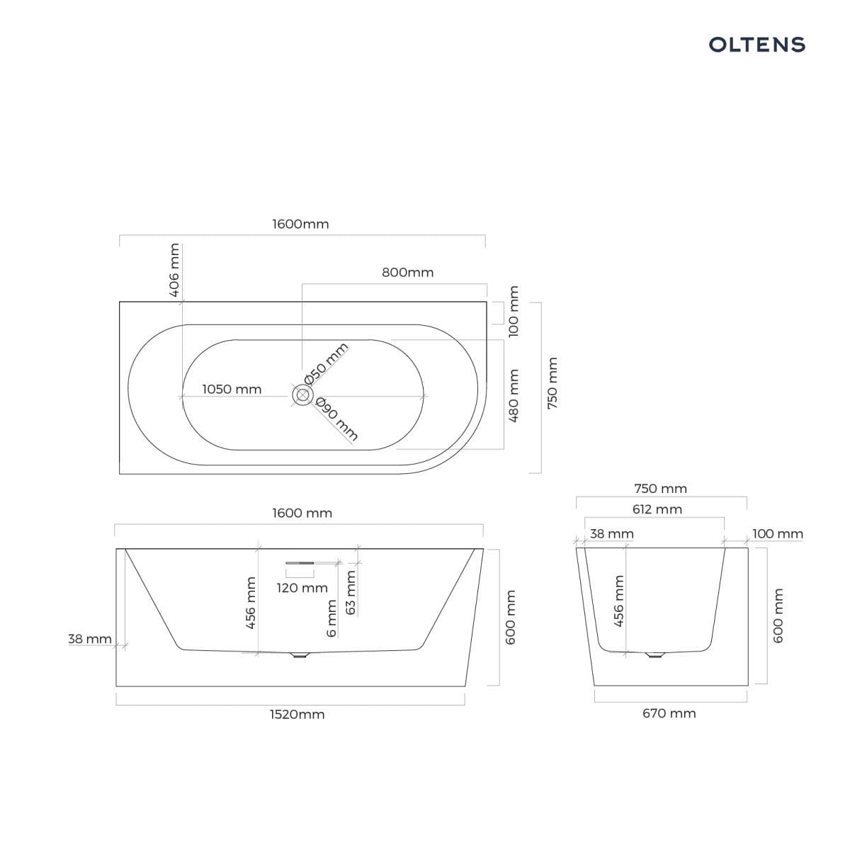 Oltens Hulda wanna wolnostojąca 160x75 cm narożna lewa , kolor biały połysk