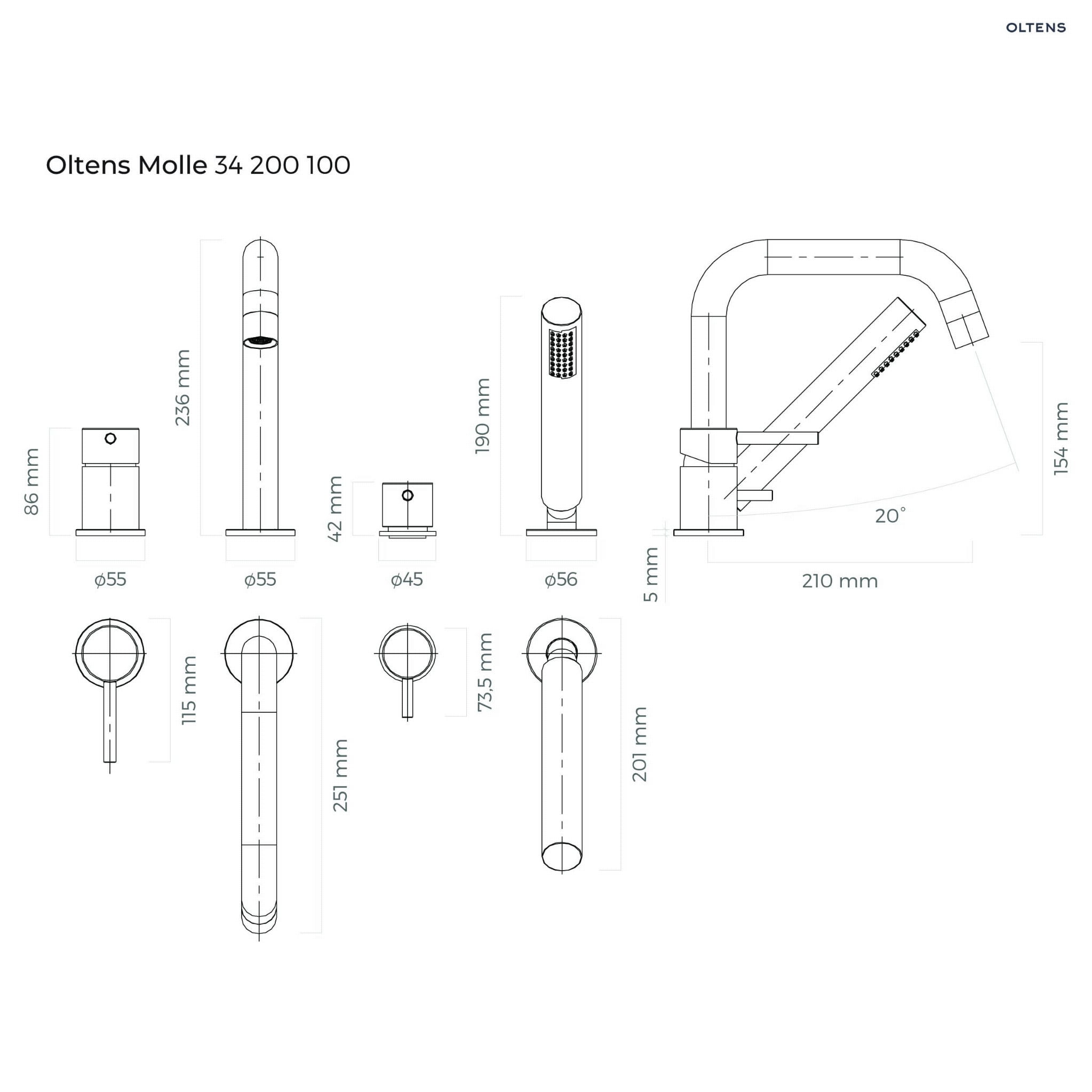 Oltens Molle bateria wannowo-prysznicowa kompletna 4-otworowa , kolor złoty , nr. kat.: 34200800