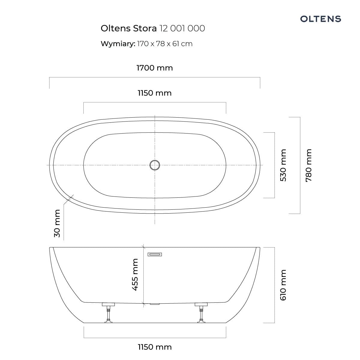 Oltens Stora wanna wolnostojąca 170x78 cm owalna akrylowa , kolor biały połysk , nr.kat.:12001000