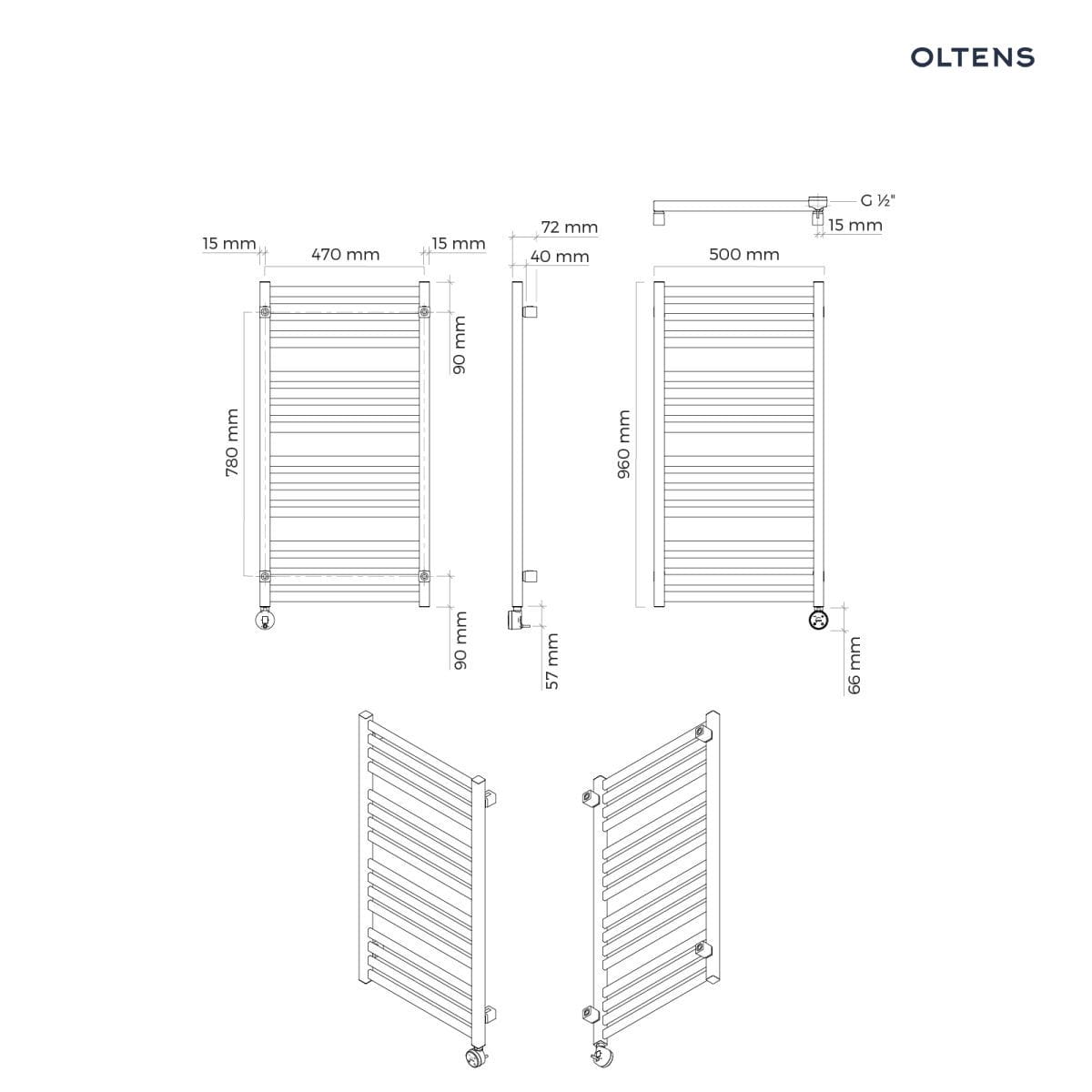 Oltens Vanlig (e) grzejnik łazienkowy 96x50 cm elektryczny czarny mat