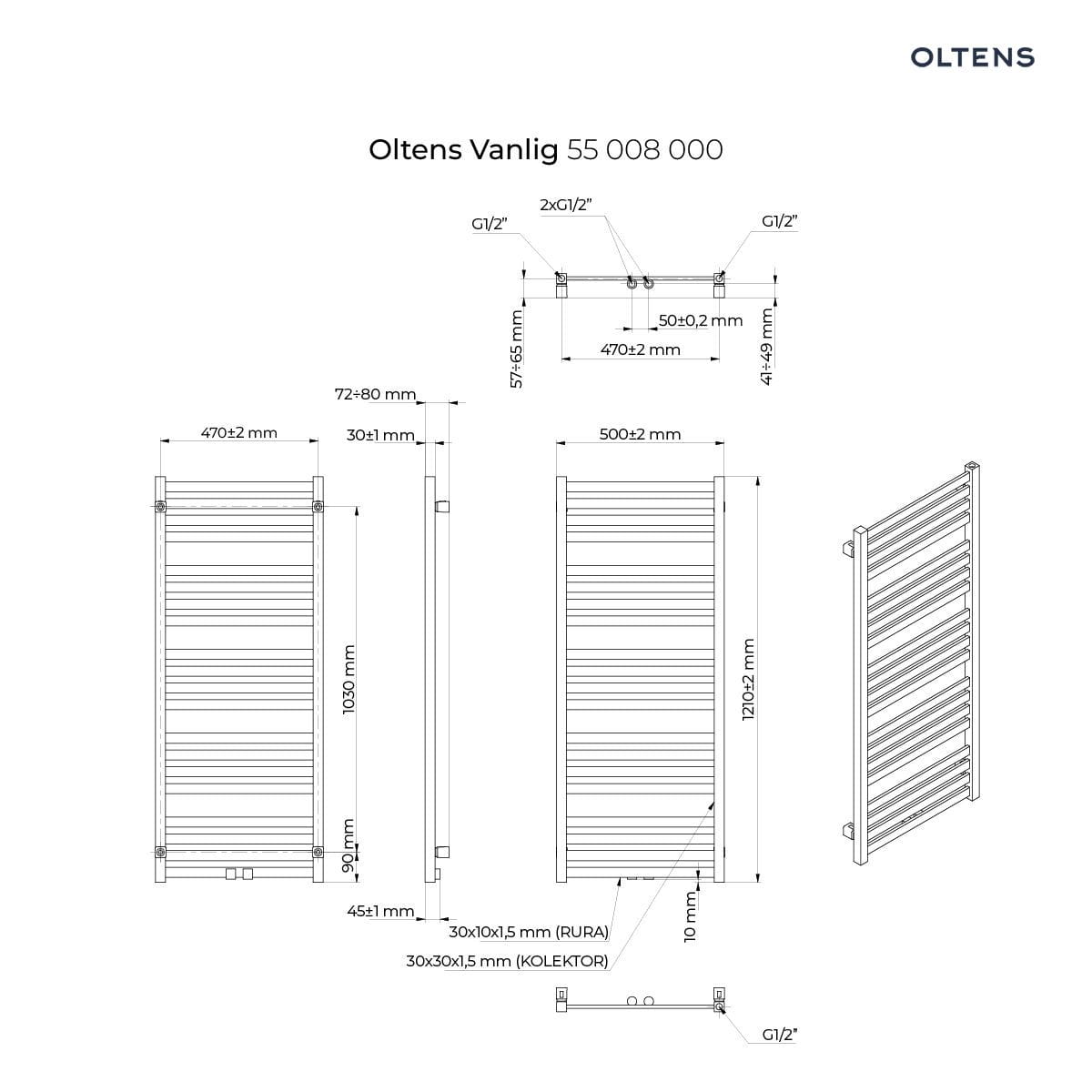 Oltens Vanlig grzejnik łazienkowy 121x50 cm , kolor biały