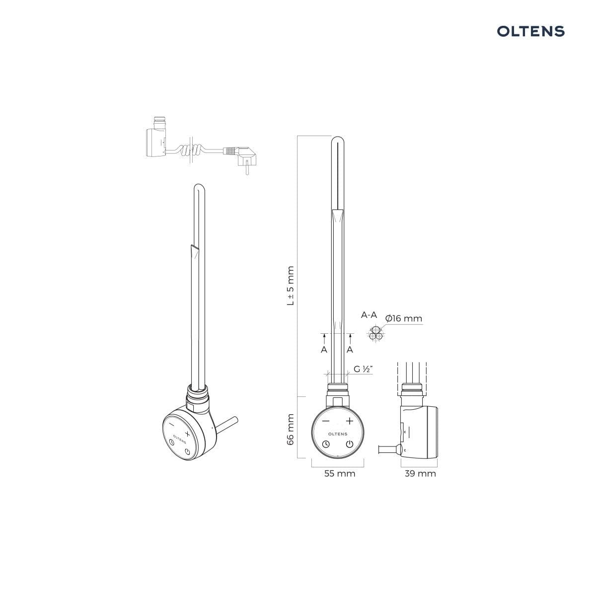 - moc grzałki: 600 W, odpowiednia do wszystkich modeli grzejników łazienkowych Oltens