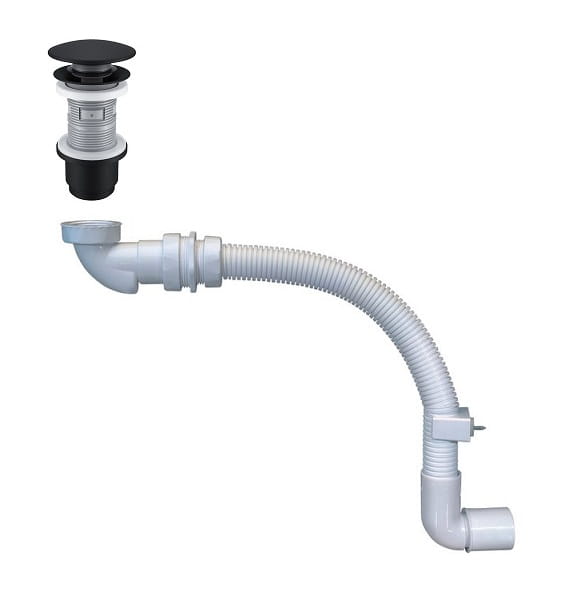 Purus Pum syfon umywalkowy lub bidetowy suchy biały z rurą elastyczną i korek Click-Clack ceramiczny czarny mat !